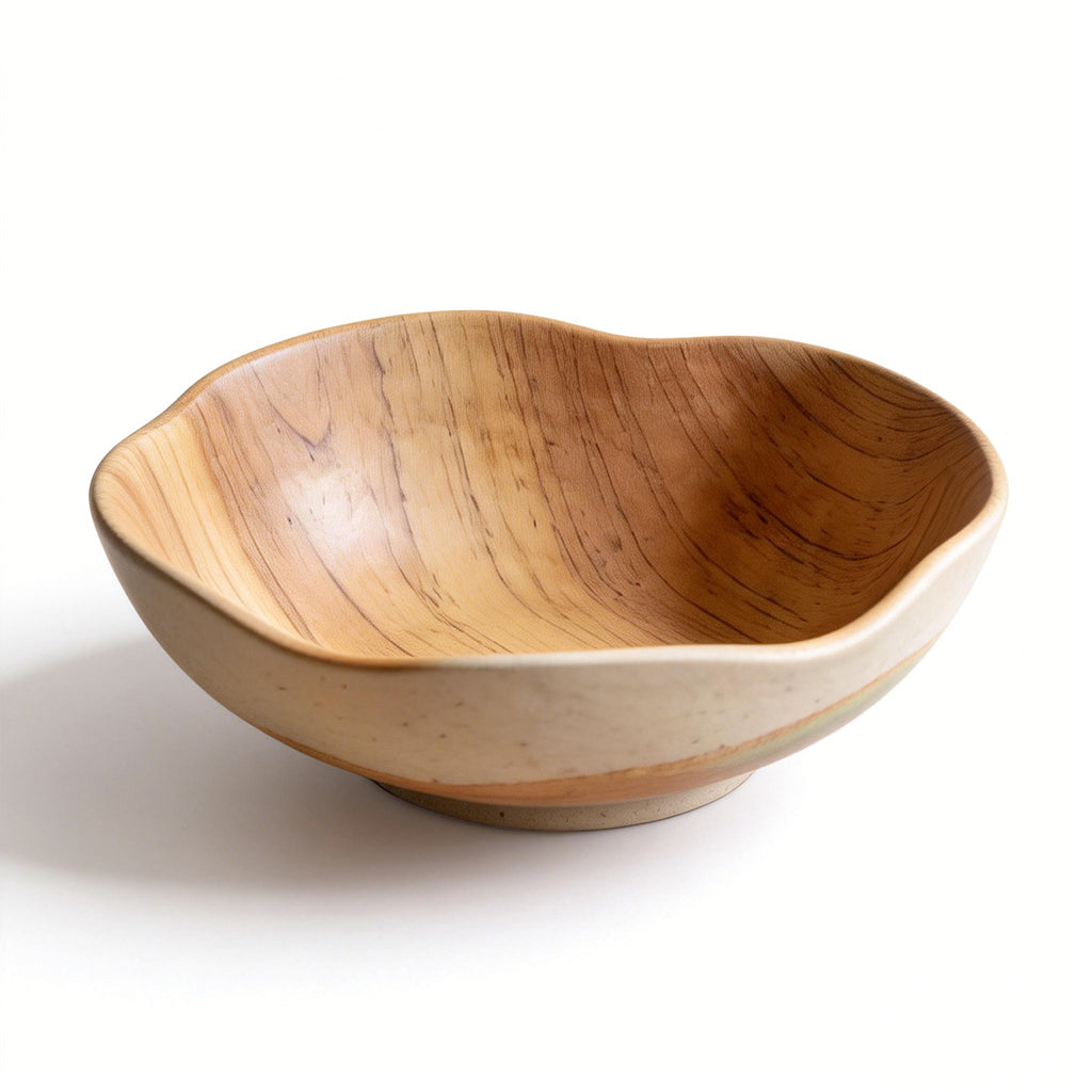 This ceramic pasta bowl features a warm woodgrain-style interior glaze that enhances the presentation of both casual and elevated meals. The gently curved shape provides ample space for pasta, grain bowls, salads, soups, or curry, while the organic rim adds a subtle handmade character.